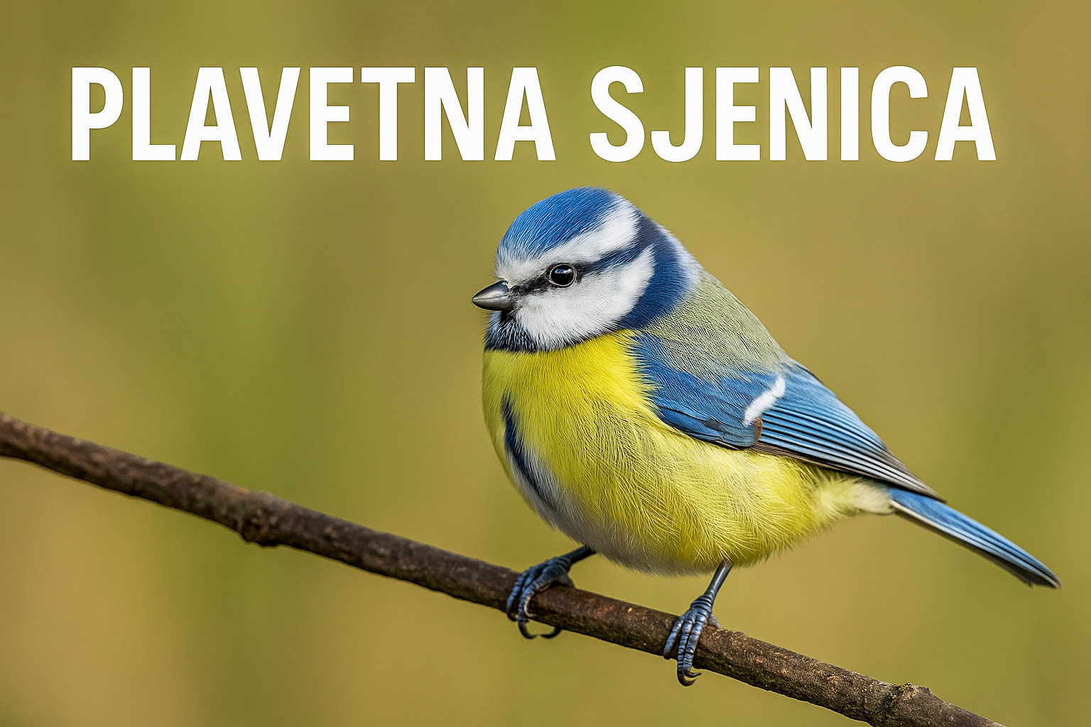 Plavetna sjenica (Cyanistes caeruleus) šarena je, živahna i spretna ptica naših vrtova i šuma, poznata po plavom perju i radoznalom karakteru.