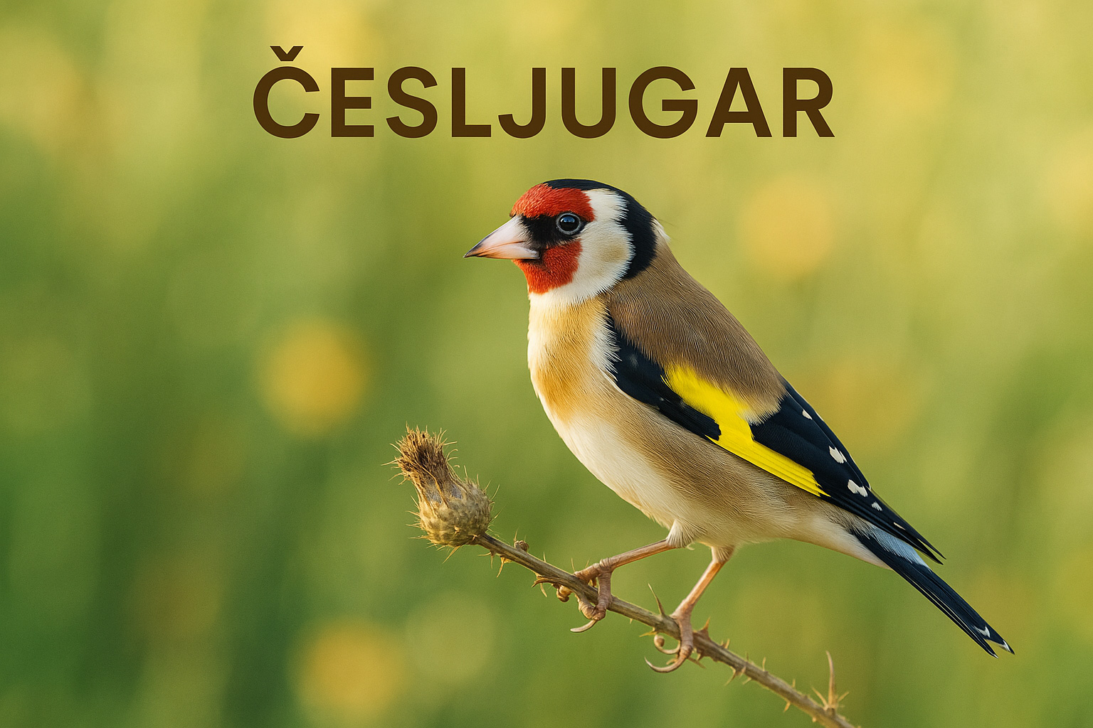 Češljugar (Carduelis carduelis) prepoznatljiv je po crvenoj maski, žutim krilima i zvonkom pjevu koji odzvanja livadama i voćnjacima Hrvatske.