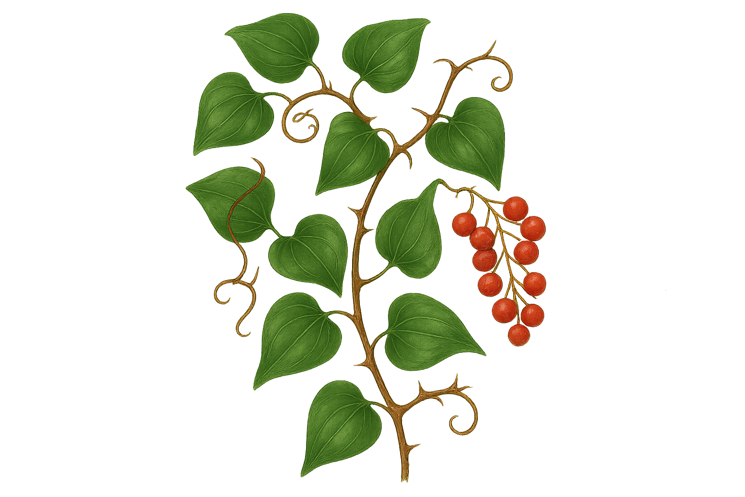 Tvrda i žilava biljka s srcolikim listovima i oštrim trnovima, koja se često omata oko grmlja i koristi kao neprobojna živica. Plodovi su sjajne crvene bobice koje dugo ostaju na biljci. Više o ovoj penjačici