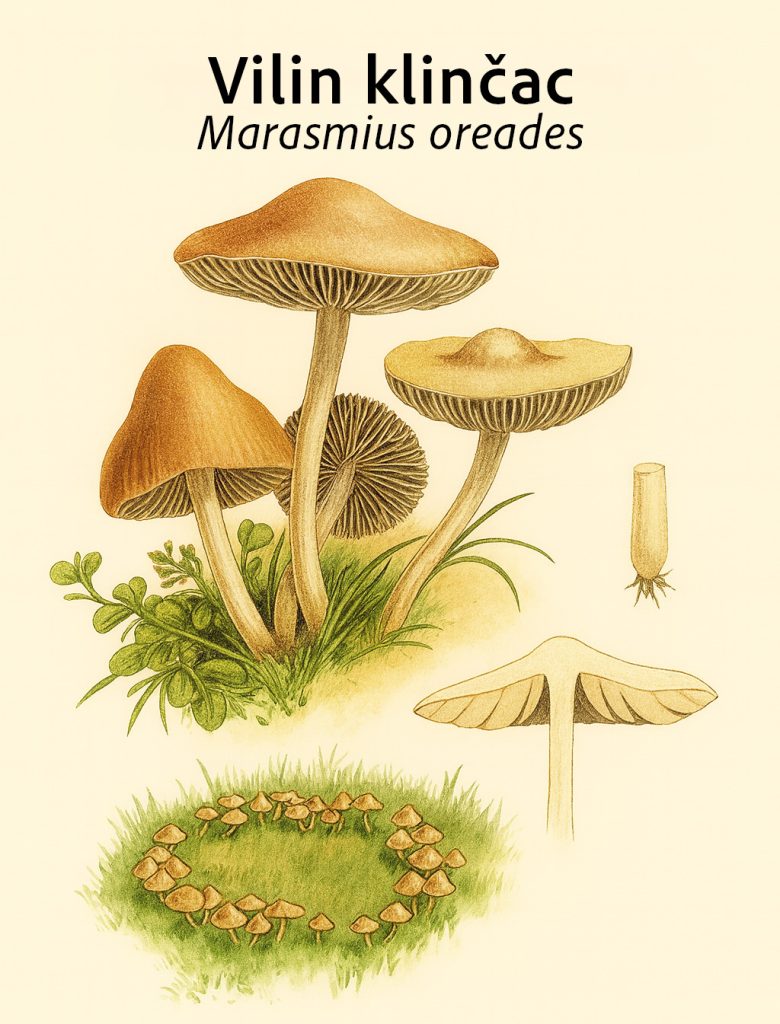 Vilin klinčac (Marasmius oreades) je sitna, ali vrlo aromatična i cijenjena gljiva, poznata po tome što često raste u čarobnim “vilinskim krugovima” na travnjacima i livadama. Ime duguje upravo toj neobičnoj pojavi – micelij raste kružno, pa gljive izbijaju u pravilnim prstenovima koji su stoljećima budili maštu ljudi i poticali vjerovanja o plesovima vila i duhova prirode.