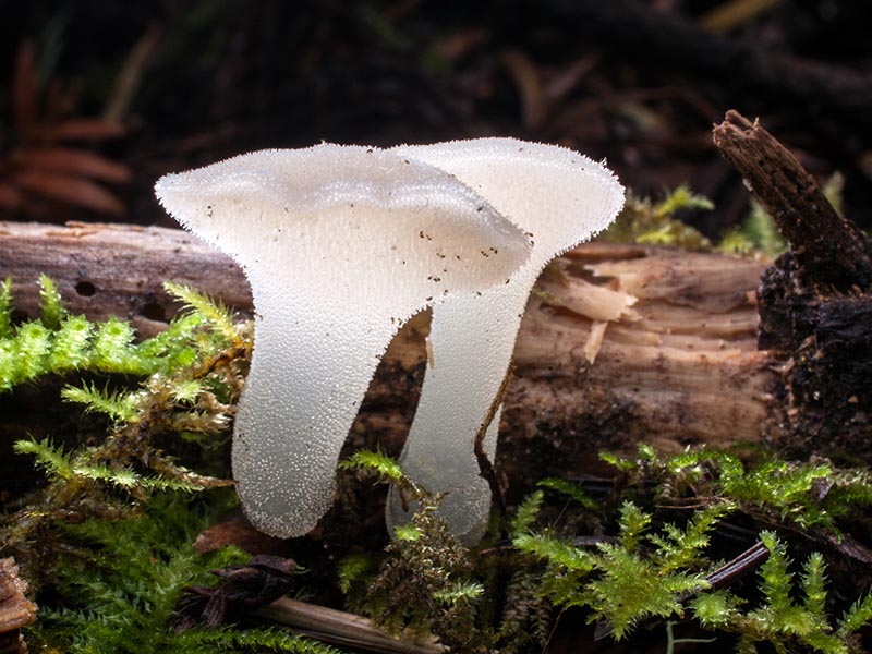 Bijela ledenka (Pseudohydnum gelatinosum) je jedna od najneobičnijih gljiva naših šuma — njezino tijelo nije ni mesnato ni krhko, već želatinozno, prozirno i svjetlucavo, poput komadića leda ili prozirne meduze. Na dodir je mekana i elastična, a zbog neobične teksture često izaziva znatiželju i kod iskusnih gljivara.