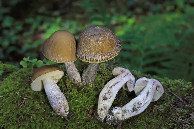 - Šaroliki djed (Leccinum variicolor) – taman klobuk, baza stručka tamnoplava.