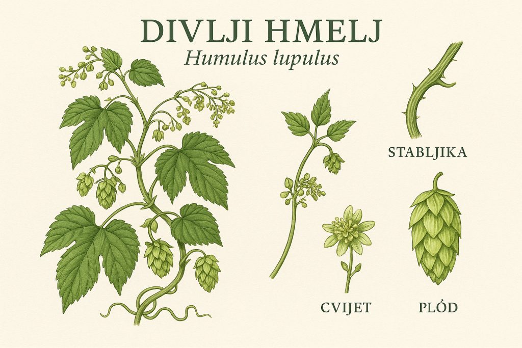 Divlji hmelj (Humulus lupulus) je penjačica iz porodice konoplji (Cannabaceae), poznata po svojim mirisnim šišarkama koje su stoljećima nezamjenjiv sastojak piva. No, prije nego što je osvojio pivare, hmelj je bio cijenjen kao ljekovita biljka i važan dio prirodnih ekosustava naših nizina i riječnih dolina.
