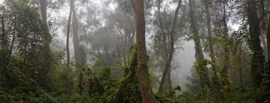Hmelj u povoljnim uvjetima može stvoriti široke zastore biljaka koji povezuju drveće, penju se u visinu i tvore zeleno svjetlucave tunelaste prolaze. U takvim prizorima priroda poprima gotovo tropski izgled, nalik kišnoj džungli, gdje gusti splet lišća, vlage i svjetla stvara dojam egzotičnog, živog svijeta – skrivenog tik uz naše rijeke.