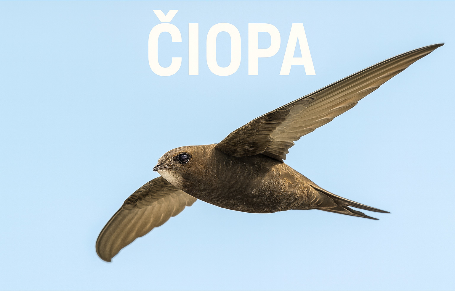 Čiopa (Apus apus) je brza, vitka i neuhvatljiva ptica čiji je reski “sriiip” postao soundtrack ljetnih večeri u gotovo svim našim gradovima. Kad se digne vrućina, a kamene ulice počnu žariti, iznad krovova već se vrte njihovi munjeviti krugovi, kao mali komadi neba koji su se pretvorili u čistu energiju.