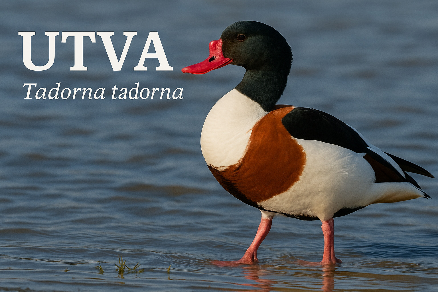 Utva (Tadorna tadorna) prepoznatljiva je po upečatljivim bojama i elegantnom držanju. Česta je na plitkim lagunama, ušćima i slanim močvarama Europe.