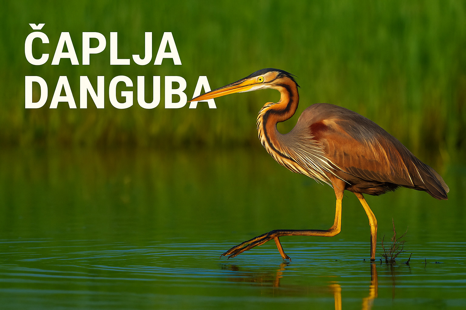 Čaplja danguba jedna je od onih ptica koje se gotovo stope s pejzažem močvare. Vitka, izdužena, obavijena tonovima purpurno-smeđeg i zlatnog perja, najčešće se skriva duboko u trski, gdje nepomično čeka plijen — toliko strpljivo da joj je upravo ta smirena taktika donijela i narodno ime danguba.