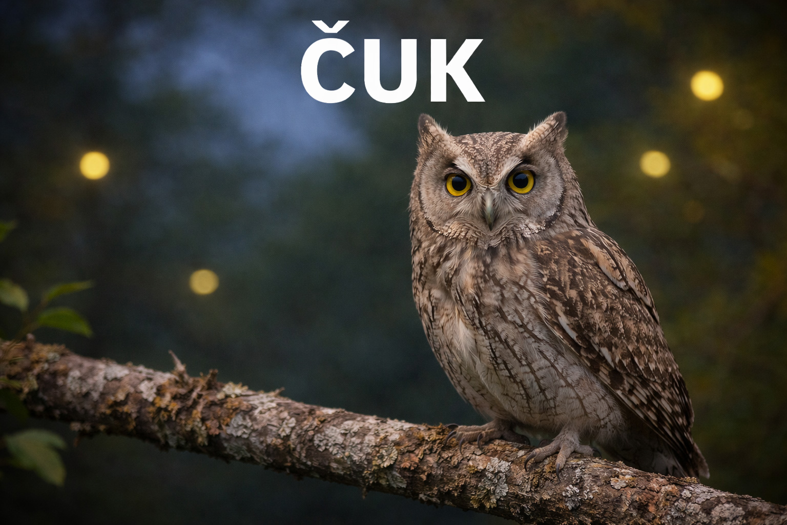 Ako postoji ptica koja dokazano pobjeđuje u kategoriji “čujem te, ali te ne vidim”, to je ćuk (Otus scops). Najmanja je naša sova, uz malog ćuka, skroz nenametljiva u izgledu, ali s glasom koji u proljetnim noćima doslovno “reže” tišinu. Njegovo monotono, ritmično „ćuk… ćuk… ćuk…“ često zvuči kao da dolazi iz svih smjerova odjednom — i to je dio njegove čarolije.