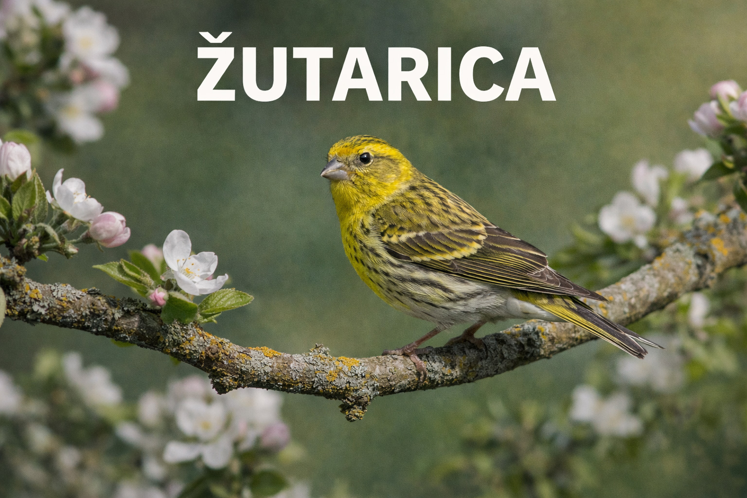 Žutarica (Serinus serinus) jedna je od onih ptica koje često čujete prije nego što ih vidite. Njezina pjesma je brz, drhtav cvrkut koji se prelijeva kao sitne kapljice zvuka – i čim se pojavi u krošnji, shvatite zašto je toliko prepoznatljiva. Iako je mala, ima energiju “velike” ptice: stalno je u pokretu, stalno nešto traži, stalno se javlja.